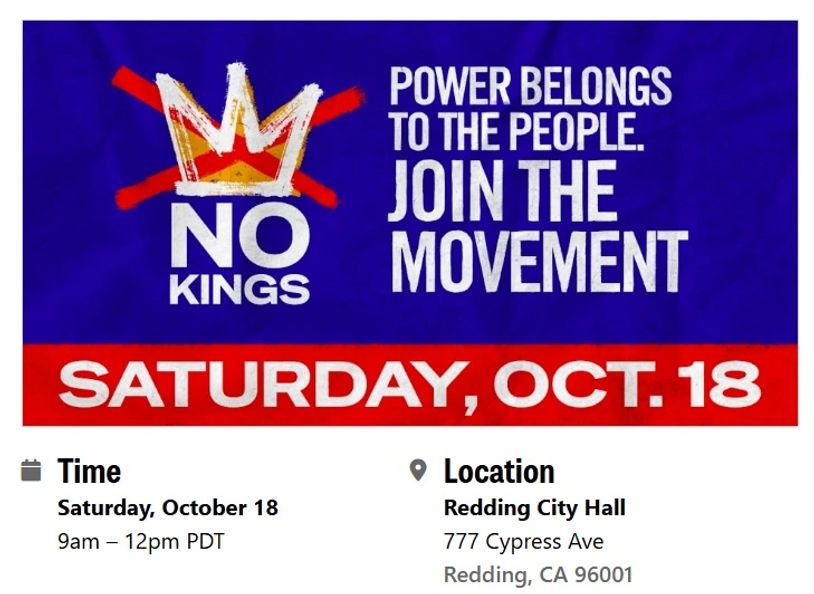 Indivisible Redding Shasta supports the mission of the National Indivisible Movement to remove the Trump regime, defend democracy and resist authoritarianism in our country and our own backyard. In a county increasingly dominated by far-right extremism, we are standing up to fight back. Our path forward is nonviolent resistance. We organize, educate, and mobilize our community to take action.